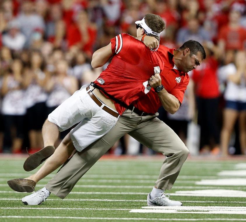 Anthony Wunder, 21, ran onto the field during last Saturday’s Ohio State home victory against Cincinnati and as he got close to the Ohio State bench, he was stopped and slammed by assistant strength and conditioning coach Anthony Schlegel, a former Ohio State linebacker.