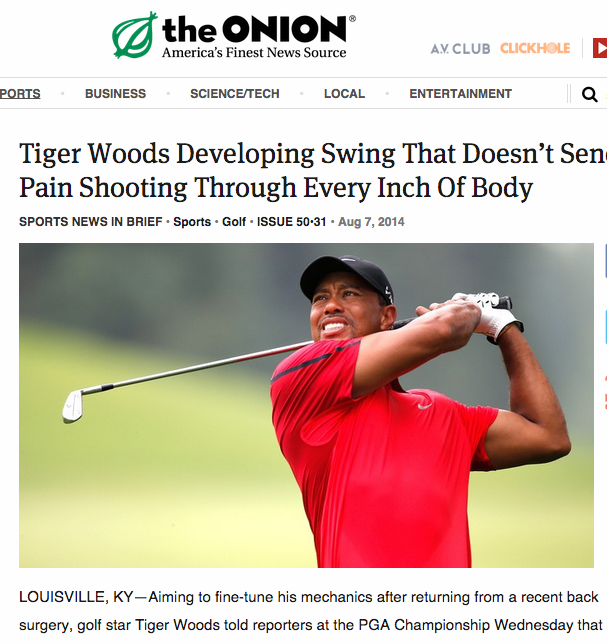 The Onion - Tiger Woods Developing Swing That Doesn’t Send Pain Shooting Through Every Inch Of Body