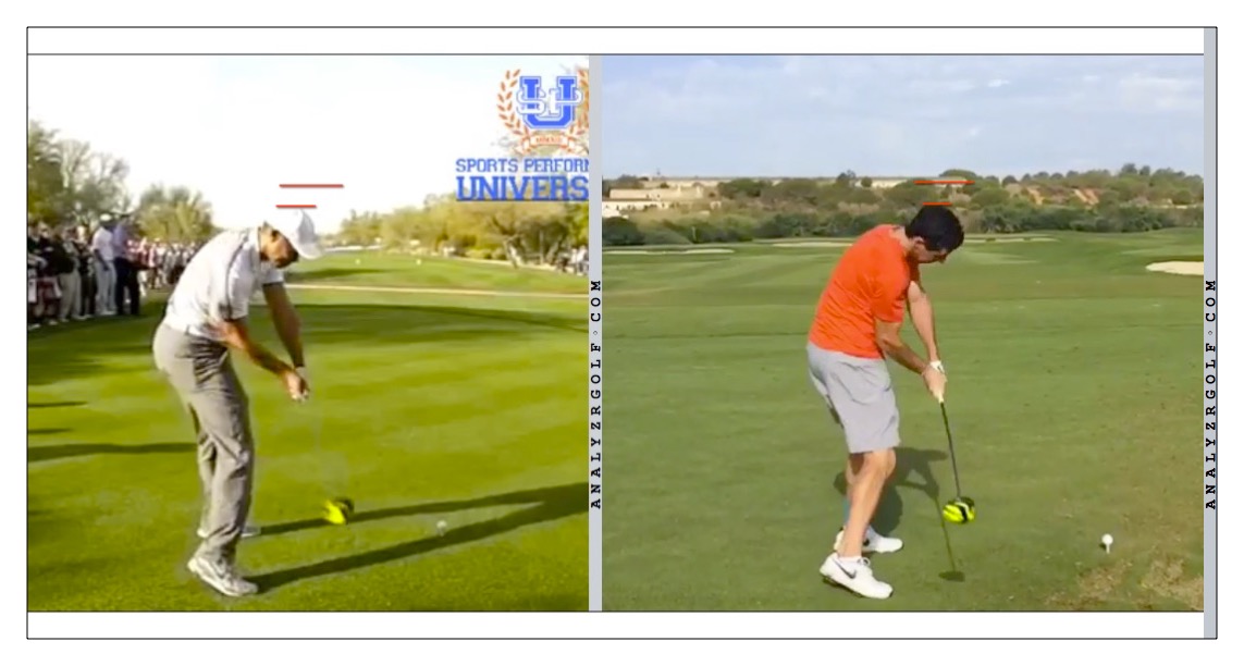 Based on the videos available out there and my layman's reading of them, Woods drops his head more than McIlroy on the backswing. They both drop about the same on the downswing. So the vids verify Chamblee on one of his points.