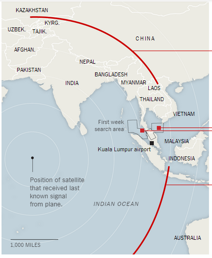 It all seems to have occurred so precisely. The transponders and other transmission systems were turned off just as they left Malaysian radar coverage, and before entering Vietnam's. A left turn executed right afterward, staying out of reach of civilian air systems. The flight routes used aligning with common airline routes so as to minimize suspicion. If all this info leaking out is true (a big if), this was a deliberate and well-planned action by the pilots of the aircraft. And whether or not it was commandeered by pilots other than the Malaysian Airlines pilots, I don't know , of course. Hard to imagine that anyone else on board would have the capability to conduct a violent takeover of the craft and then coolly execute the mission as described above with perfect timing. In Hollywood maybe, not in real life. Mystery just deepens every day.