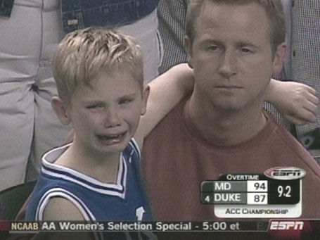 LOL ... I sorta feel bad for the kid ... It's not his fault he's being taught to root for Duke. :dance:
