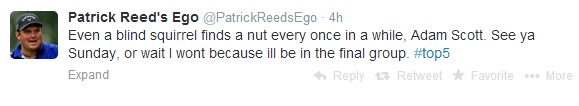 LMAO! He's just too easy to make fun of. I really disliked him last year, but he is growing on me recently...can't hate the way he plays golf. Makes tough shots in huge situations. He'll finish top 10 here, I'm almost sure of it.