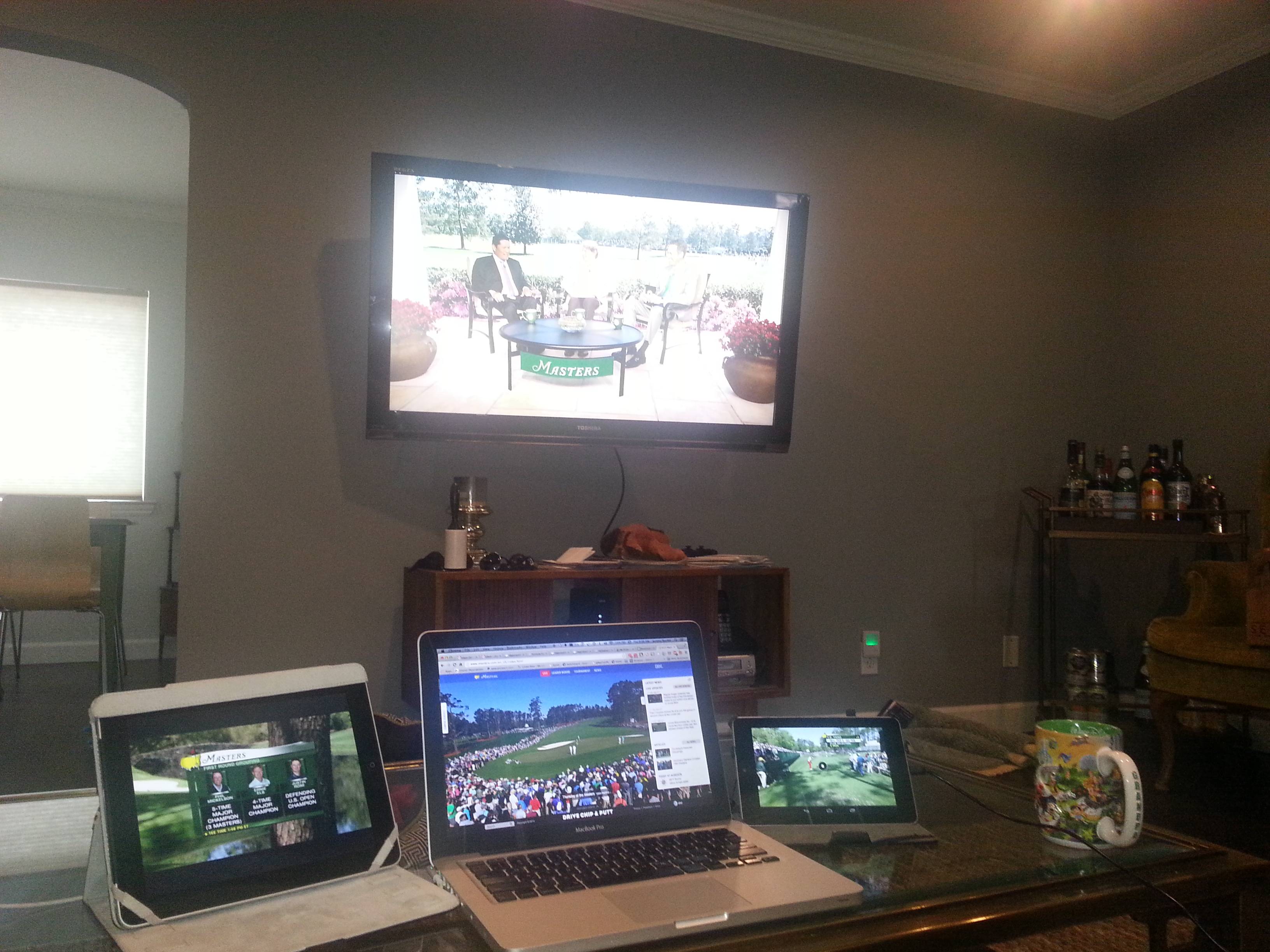I don't have quite that armada of tablets, but I do have screens as wide as the eyes can see: Only problem is that I need to build a pedestal or something for my TV.