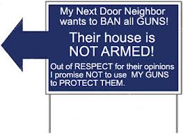 So would either of you have an issue if your neighbor had a sign like this.  Other than the banning part.  I realize both of you stated that you do not want to ban guns, simply that you do not care for them.