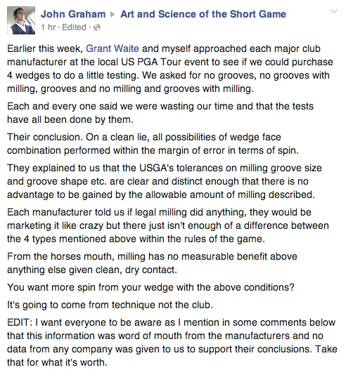 Science of the Short Game, Effects of Grooves and Milling on Wedges