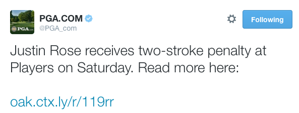 Justin Rose receives two-stroke penalty at Players on Saturday.