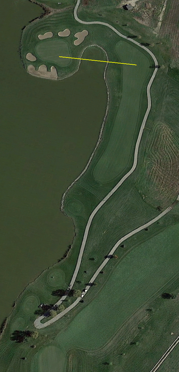I think 90% of the time I'd normally play it as a par 3.  (here it's a 2h or 5w with an 'easy' swing - at altitude, it might even play like a 200 yard shot for me - I like that shot even better 5i or 4h).