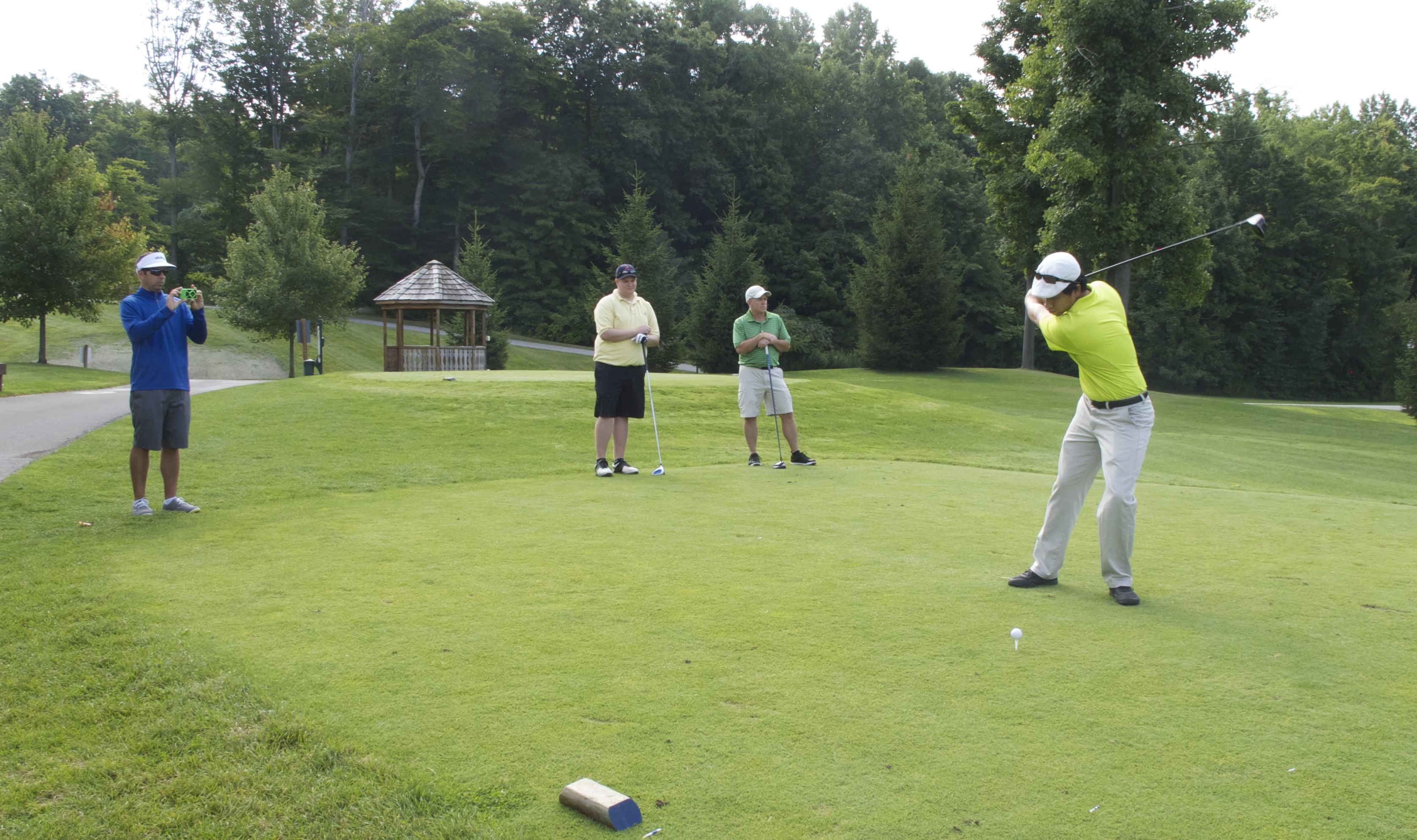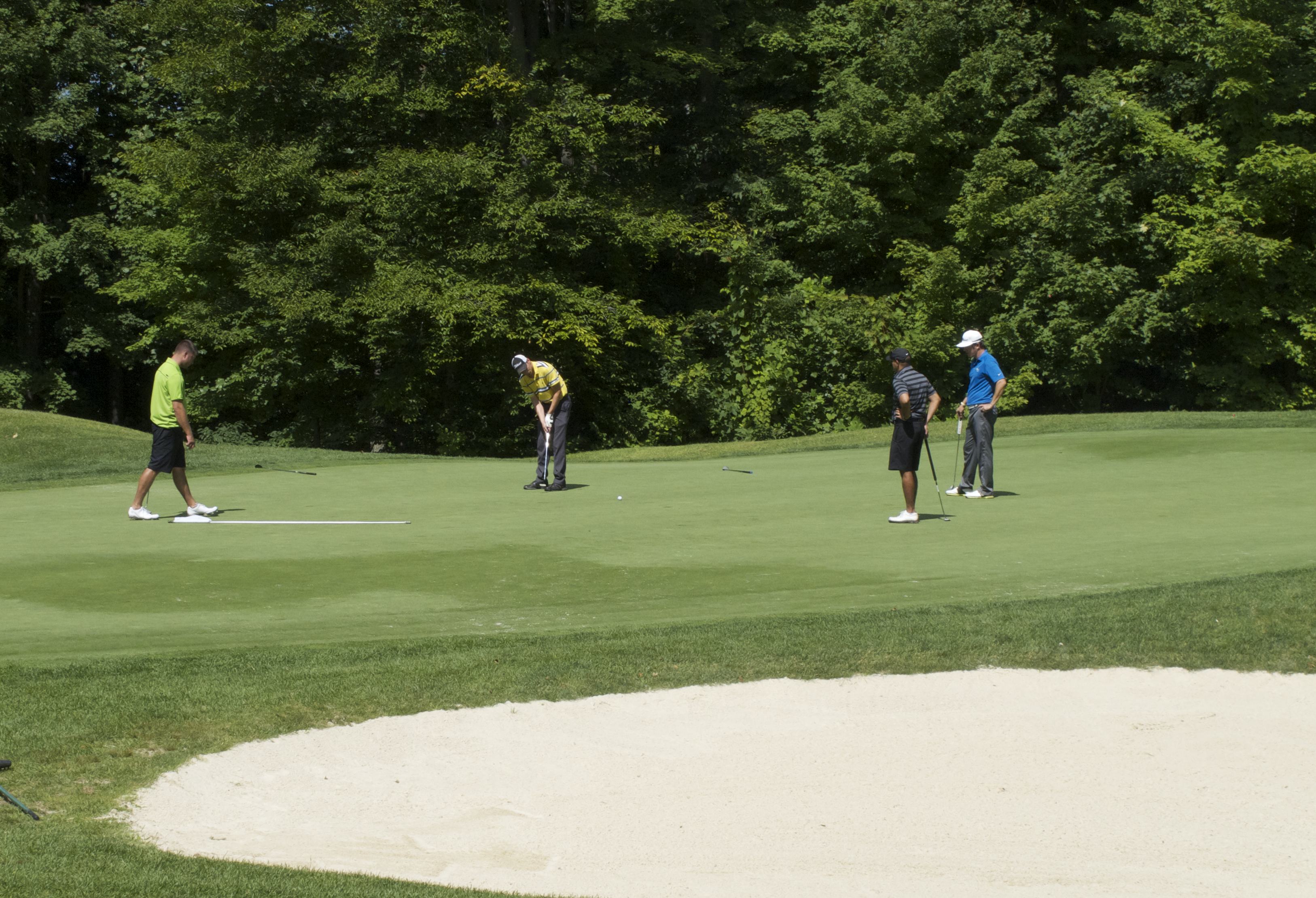 The winning team of @macdaddy18 , @cedrictheo , @rwolfe , and @vasaribm all hit the fourth fairway (and the fourth green!)