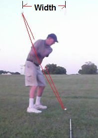 Due to the incline of the plane, which creates what I've labelled the plane width, the plane is seen as an ellipse, not a straight line. Based on that measure, the club shaft at the top of my swing is dead on plane. If the club shaft were pointing at the ball, it would be off plane. What am I missing?