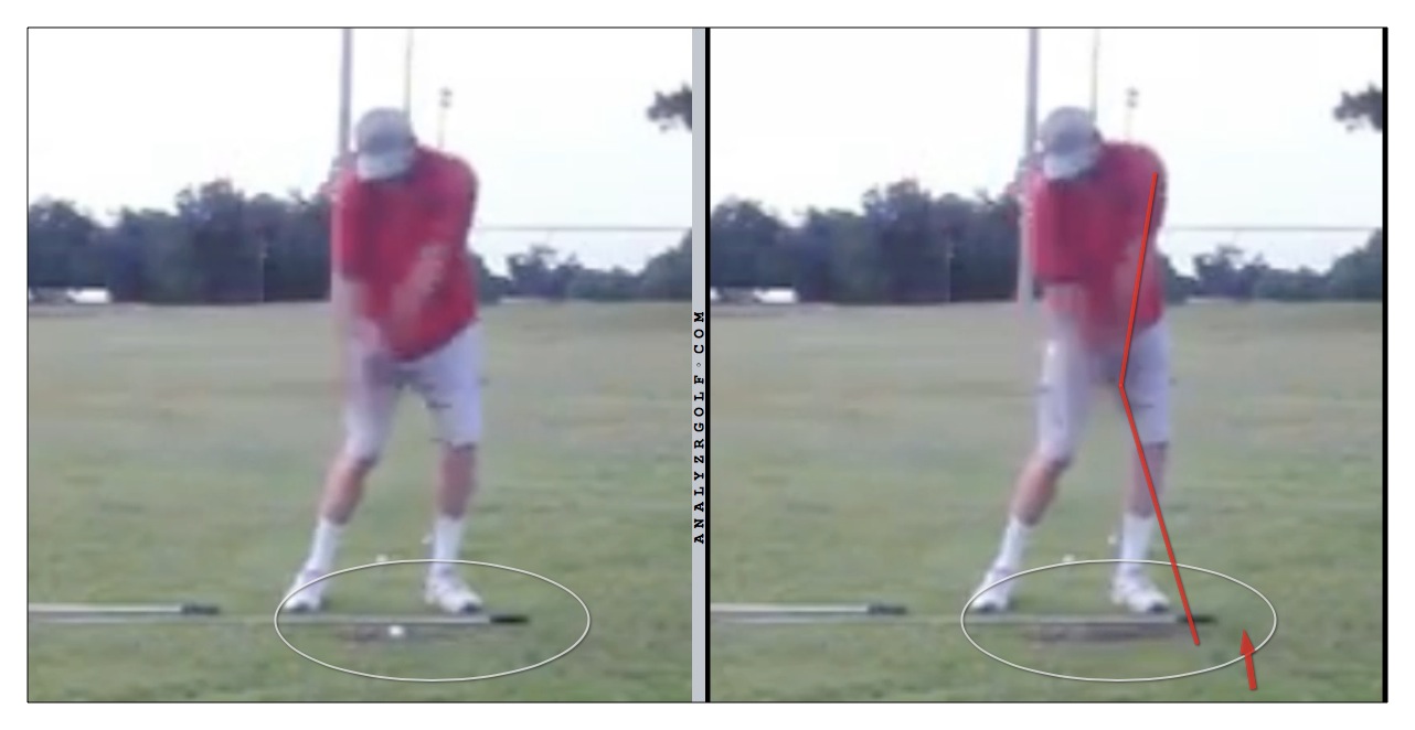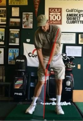 It gave me the incentive I needed to keep the knees level, get better stacked on the right side at the top, and keep the left humerus better leveraged against the rib cage ( I know the club face is closed to it's arc here; working on it):
