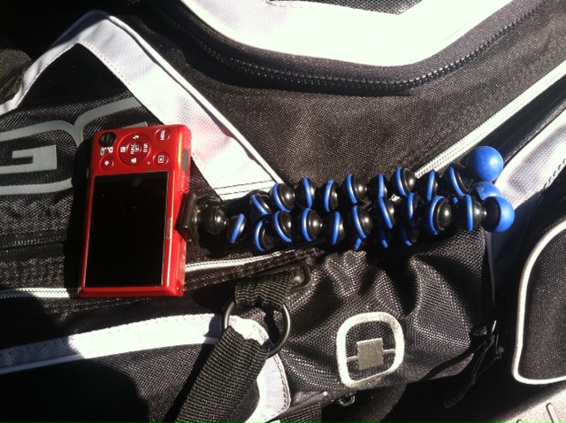 Here is the flexible tripod mount attached to the handle of my push cart that was used to do this.