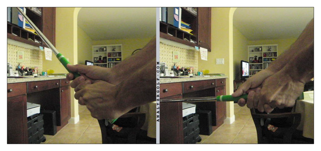 2) The "long lead thumb": I was keeping the spaces between both thumbs & index fingers tight - I think from a Martin Hall lesson on TGC (I remember him putting a golf tee between the thumb & index finger of each hand & making them line up). The long left thumb felt better & definitely allowed me to hinge my wrists more naturally & freely.