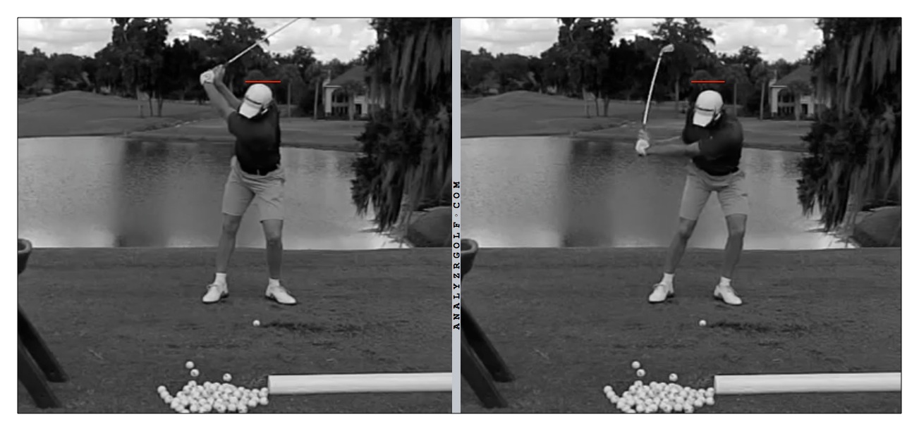 It's been a while since I posted on my thread but I have been hard at work with Brian @ evolvr. Here is some stills of my progress, Brian had me working on getting more rotation with my hips and shoulders through impact. Here is a pic of the before on the left and the after on the right. Now he has me working on getting my legs straighter at impact and beyond, you can see from this picture that my legs are pretty bent and are not extending like they should.