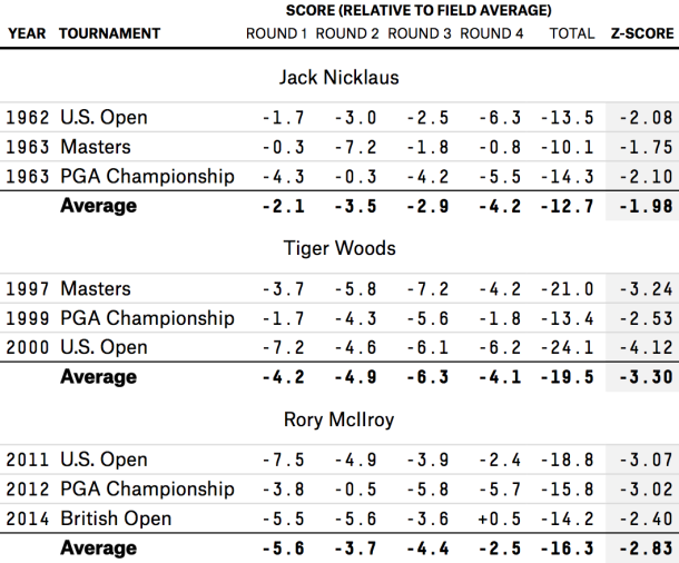 FiveThirtyEight: Rory vs. Tiger vs. Jack Though 3 Major Wins