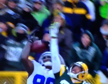 Yep. I think it looks much more evident from the face on view. Dez made one heck of a play for sure as did the GB player who got just enough of a finger on it to jostle it loose.