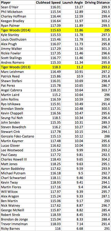 Tiger's launch angle numbers, not sure if this is for the year or just for the PGA