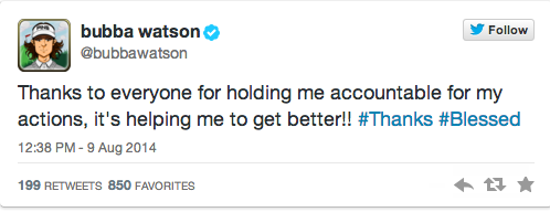"I need to be held accountable," he said following a third-round 73 that left him at two-over-par 215. "The Bible says you don't act that way, and I did." So he thanked "all the people on Twitter, all my supporters, and the media. I love it. I'm glad people called me out."
