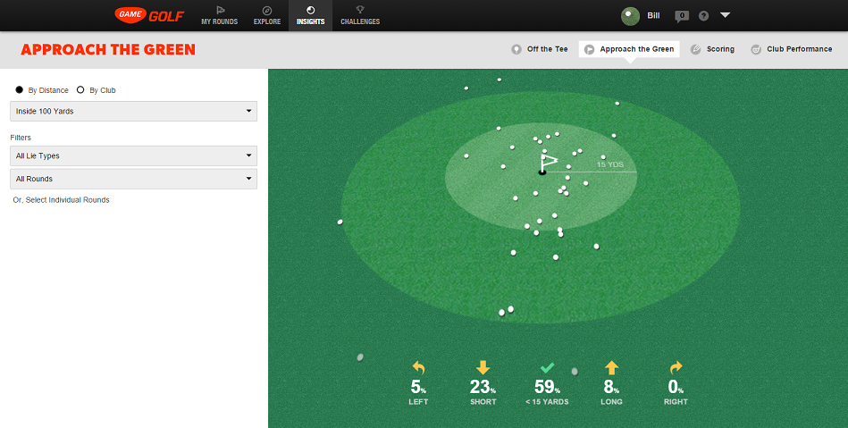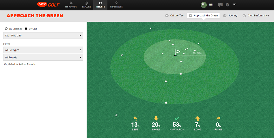 I like what they offer in terms of the insights, I'd just like to see more. The way it's set up now, when you go into the "Approach the Green" analysis part, you can sort by distance or by club. I'd like to see it broken down both ways.