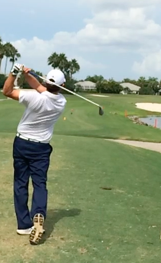 Here is a slow motion video of a practice swing and actual swing.
