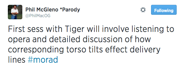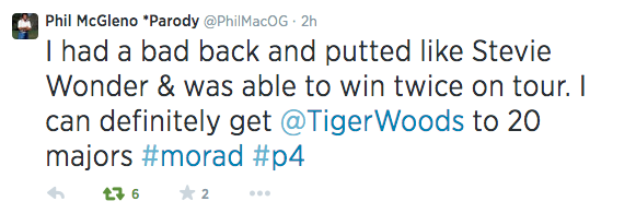 In all seriousness, he has forgotten more about the swing than I currently know, so my only advice to him is to go out there and have fun again. I enjoy watching him play more than any player, but I don't like it when he gets frustrated out there. Hard to play well in such a mindset.