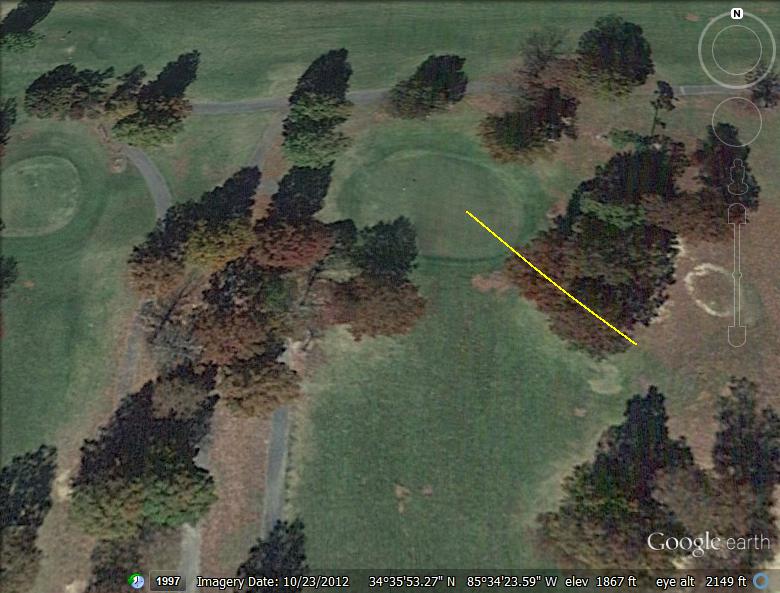 High is out of the question because the trees are too tall and very low odds of going along the ground over tree roots, through a swale, and up a bank of Bermuda rough.