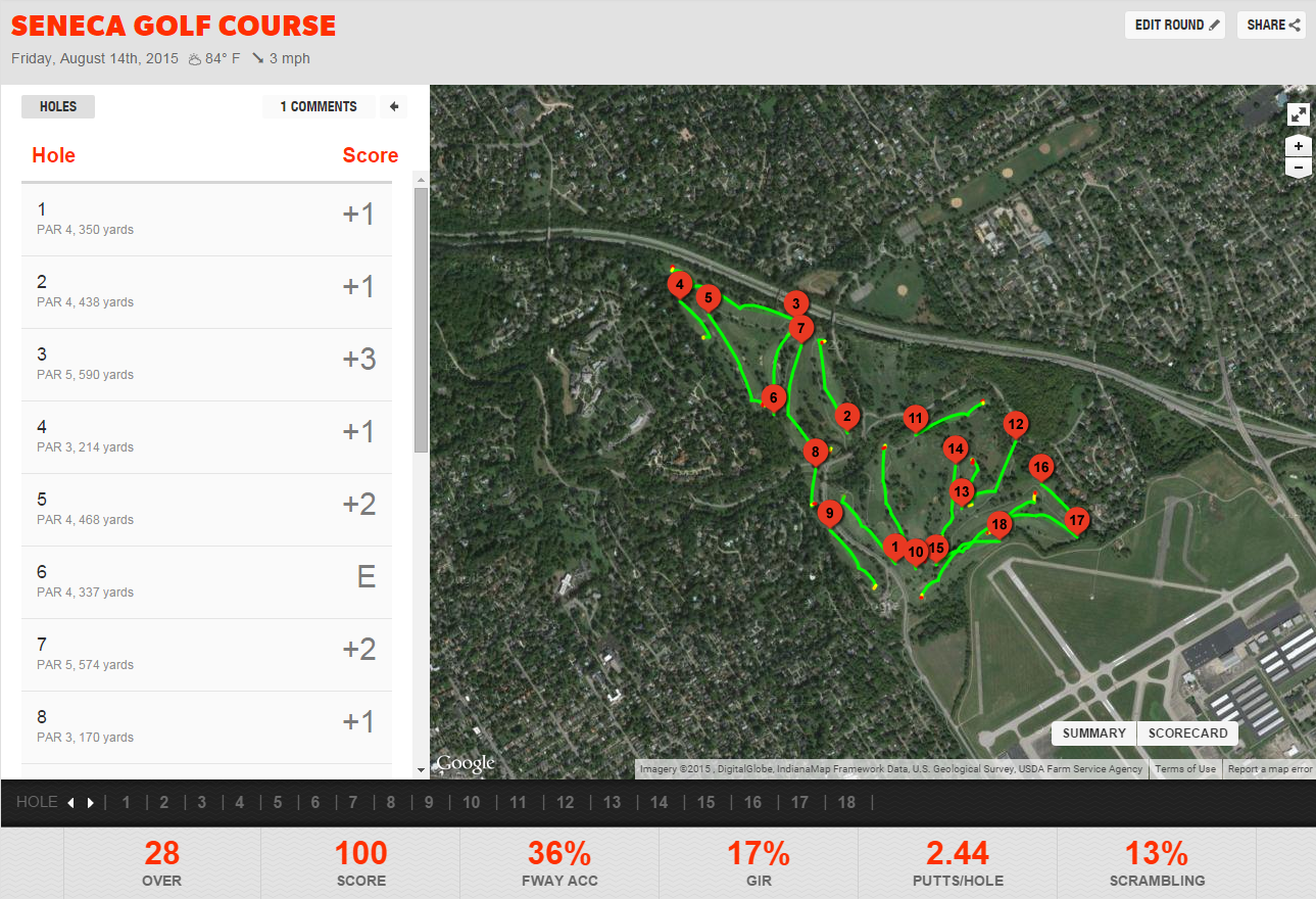 Earlier today on the front nine at Chautauqua (Lake): http://www.gamegolf.com/player/iacas/round/574131