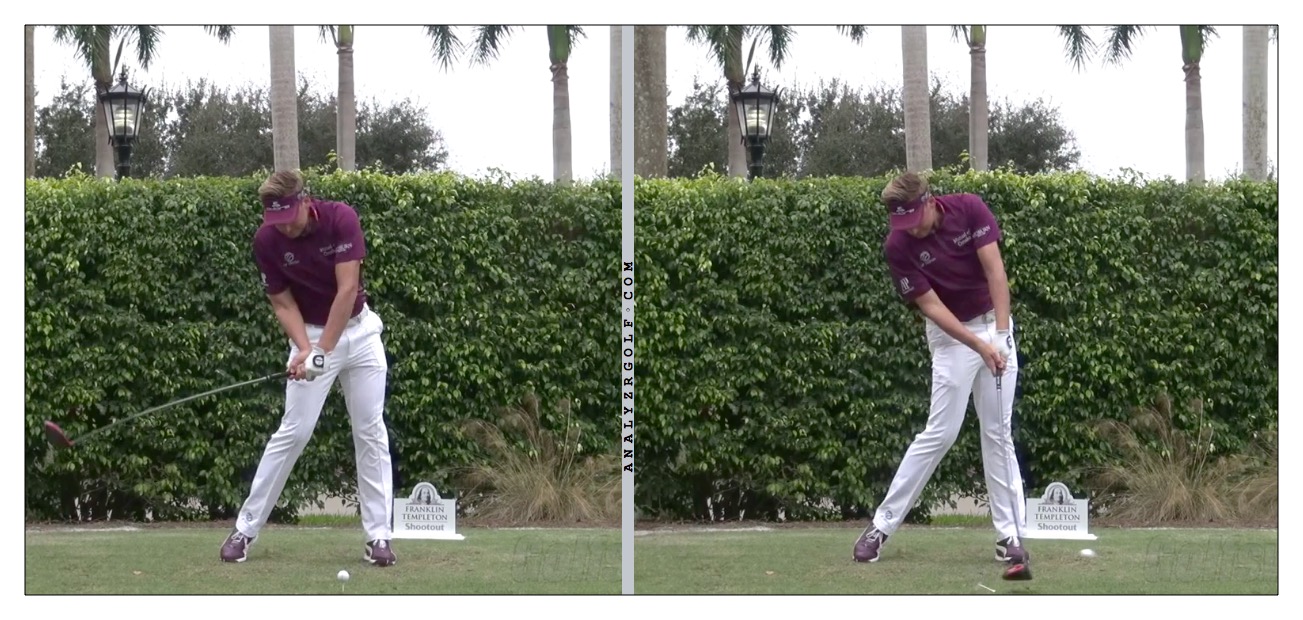 Here is Poulter pre-impact, similar point in swing to DJ but notice how Poulters right wrist is bent back while DJ's is straight.