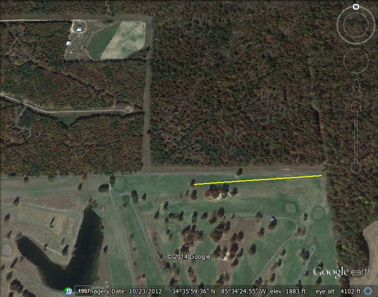I hit my longest drive ever this year in a high school tournament (and even hit the fairway with it :dance: ) with firm fairways and a bit of a downslope to help me out (the course was in better condition that the Google Maps photo though)