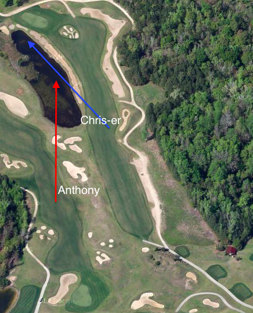 Best I can tell, these were Anthony's and Chris-er's shots on the final hole.  Was Anthony unaware of the massive body of water??? It looks like he was surprised it was wet.