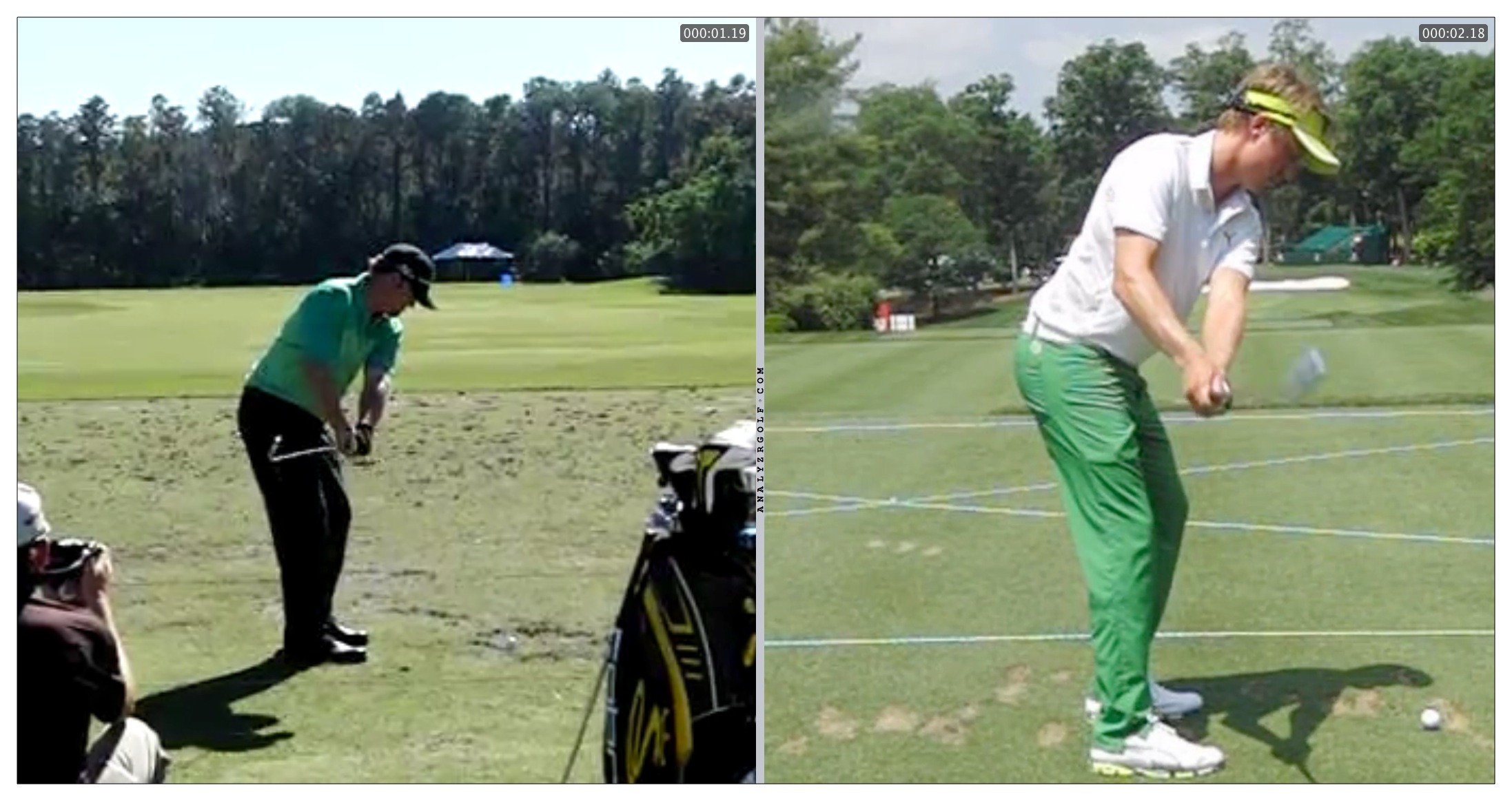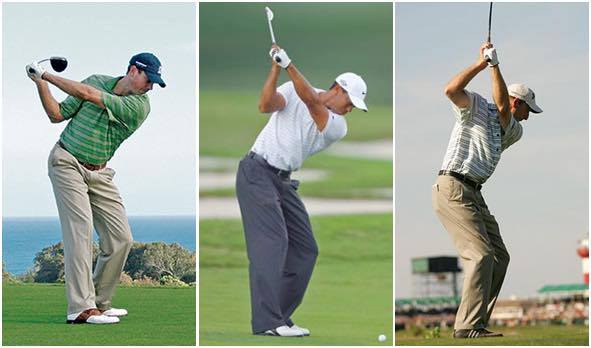 Jim Furyk. Ray Floyd. Rickie Fowler. Key #4 is Diagonal Sweetsoot Path. It applies primarily to the downswing. nobody hits the ball with their backswing. The purpose of the backswing is to get into a good position by the very early downswing. Also, the wrists are active very early in the backswing in many great players. By "early" I mean before the shaft reaches horizontal.