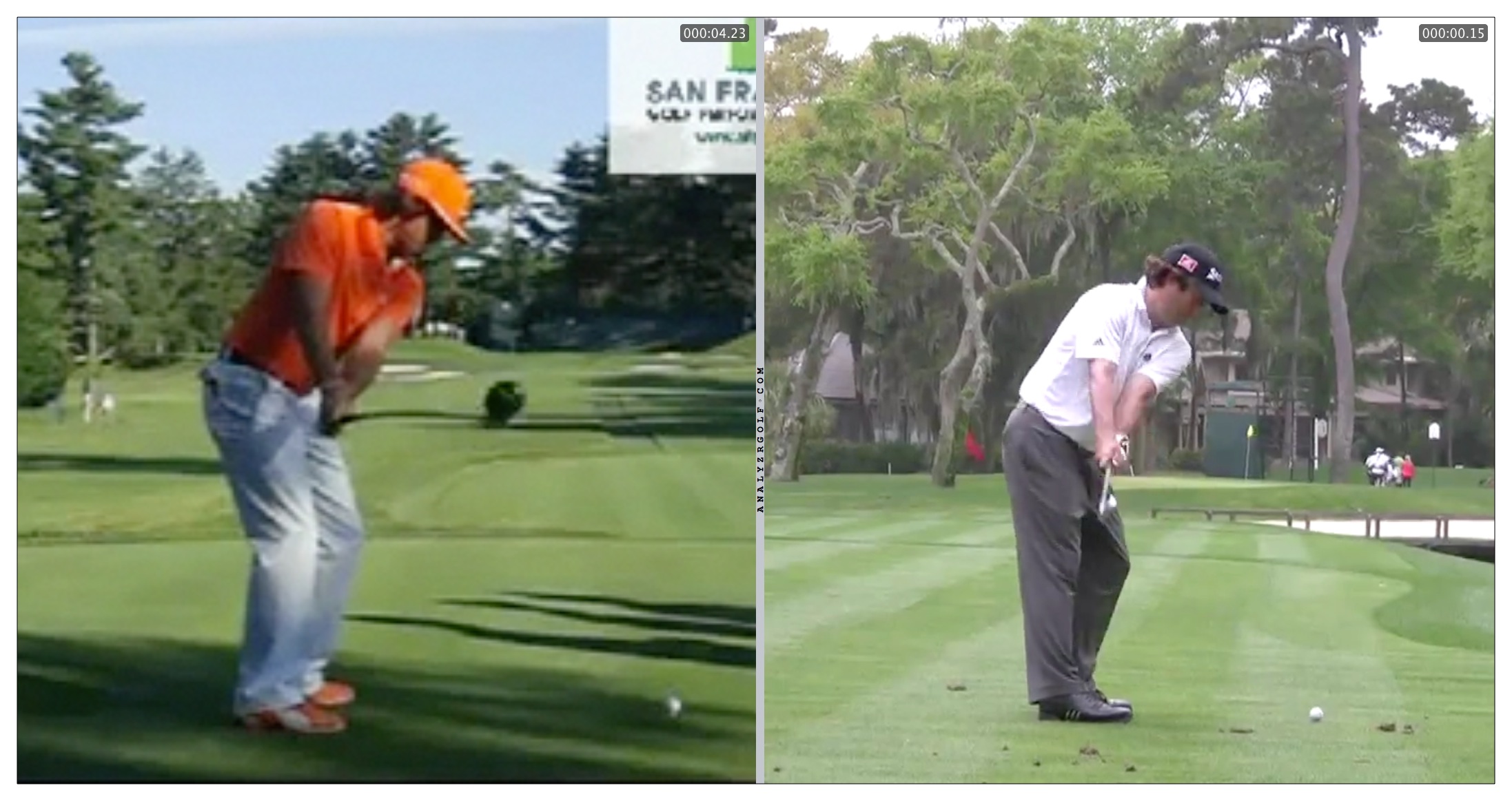 I think we have different definitions of "a lot" in this case. The farther something gets from the event (in this case, impact - which is also not "one-size-fits-all" on the PGA Tour or the higher levels of golf), the less importance and relevance it has to the event. The backswing doesn't have no relevance (just as the grip and setup don't), but their relevance is not what I would call "high" or "a lot." And I say that working on… a backswing piece in my own swing. Why? Because for me, it messes with my transition and early downswing. Once a player reaches what we call A5 or "5" it's the point of no return. Things set in motion cannot be recognized and by about then - the signals literally can't get from the brain to the muscles fast enough. I think we must disagree on the definition of "outlier" as well. I see a fair amount of unusual backswings on the PGA Tour. Very few of them have the same wrist bending/cocking rates, the same elbow bending rates, the same wrist roll (forearm roll) rates, etc. You have players that suck the clubhead inside (see also: Ray Floyd) and players that keep the clubhead outside their hands quite a bit. [SPOILER=Pics]Pics:[URL=http://thesandtrap.com/content/type/61/id/107141/] [/URL] [URL=http://thesandtrap.com/content/type/61/id/107142/] [/URL] [URL=http://thesandtrap.com/content/type/61/id/107143/] [/URL] [URL=http://thesandtrap.com/content/type/61/id/107144/] [/URL] [URL=http://thesandtrap.com/content/type/61/id/107145/] [/URL] [URL=http://thesandtrap.com/content/type/61/id/107146/] [/URL] [URL=http://thesandtrap.com/content/type/61/id/107147/] [/URL] [URL=http://thesandtrap.com/content/type/61/id/107148/] [/URL] [URL=http://thesandtrap.com/content/type/61/id/107149/] [/URL] [URL=http://thesandtrap.com/content/type/61/id/107150/] [/URL] [URL=http://thesandtrap.com/content/type/61/id/107151/] [/URL] [/SPOILER]
