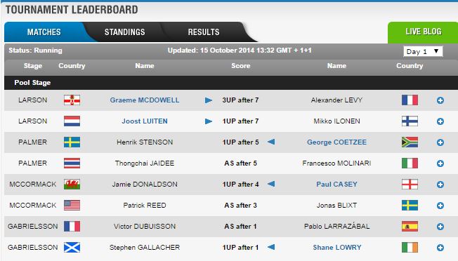 Good start from Luiten, immediatly to 1up because of an eagle. Scond hole both birdie. G-Mac - Levy still A/S.