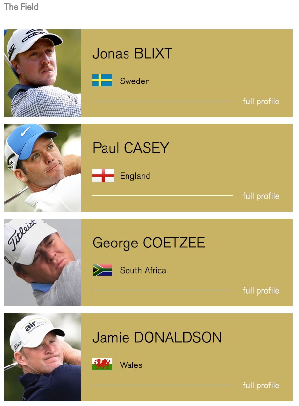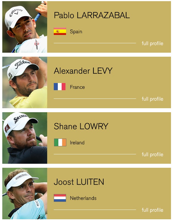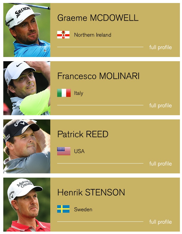 The playing field: Patrick Reed, Henrik Stenson, Graeme McDowell, Jamie Donaldson, Victor Dubuisson, Stephen Gallacher, Paul Casey, Joost Luiten, Francesco Molinari, Pablo Larrazábal, Jonas Blixt, Shane Lowry, Thongchai Jaidee, Mikko Ilonen, Alexander Levy and George Coetzee