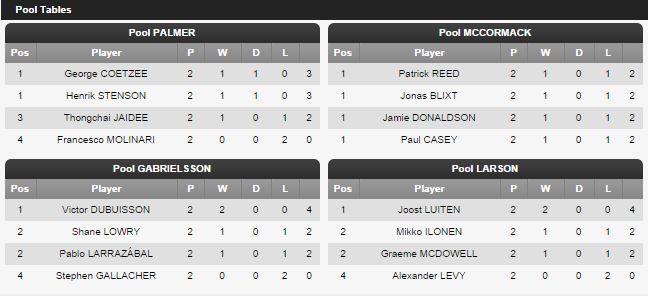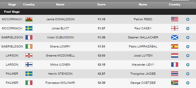 Wow, this is bad. Luiten with his 3rd on the green while G-Mac missed it. Few minutes later Luiten got a bogey and McDowell a par.... 2down. Levy is up so that's good news for Super Joost.