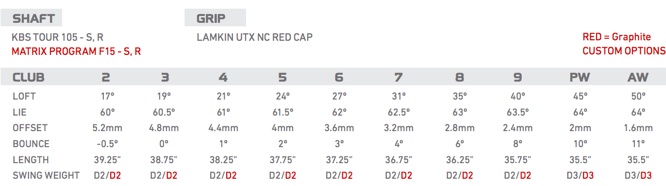 -WEDGES: Fully forged 1025 carbon steel wedge for optimum feel and precision