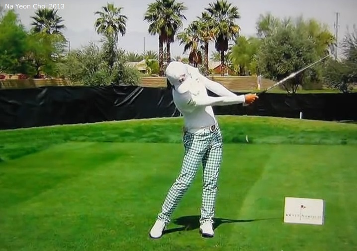 @DrvFrShow I too really like Na's swing, you were the one who originally pointed her out to me.  She looks right in line with what Mike and Eric teach at least to my partially educated eye.  The only thing I notice is she is not flaring her feet outward as they recomment (and neither does Michelle Wie).  But it looks like you could model everything else off of that swing.