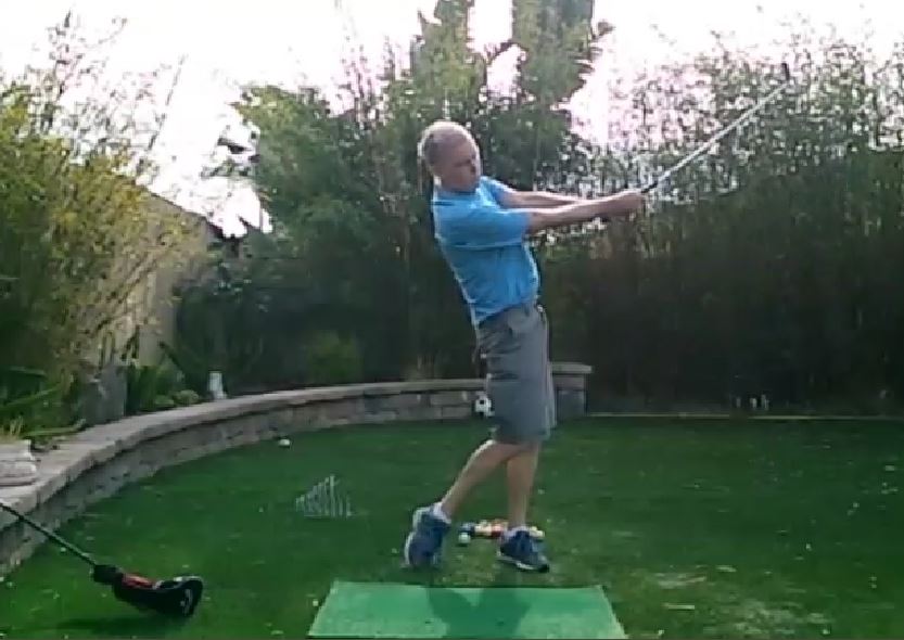 Focusing on my priority of left leg straight shortly after impact.  I'm doing this slow, short swing focusing on straightening the leg: