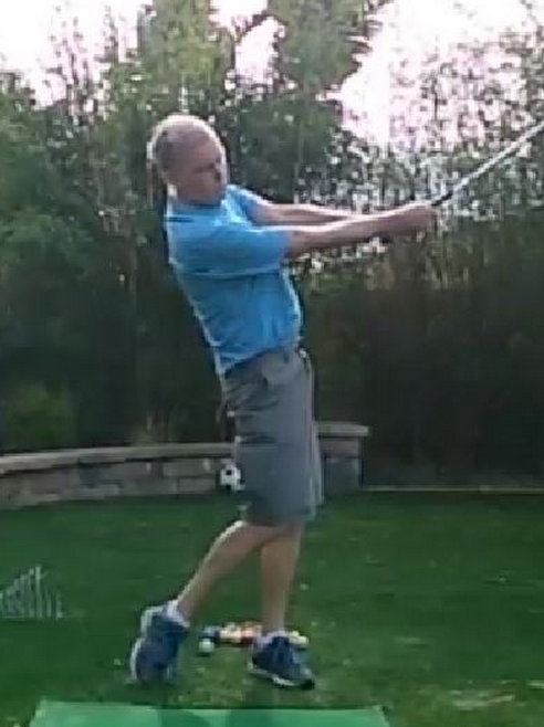 I'm only able to do a 1/4 swing, about 15 yards with a lob wedge, because of the size of my back yard.  My attempt: