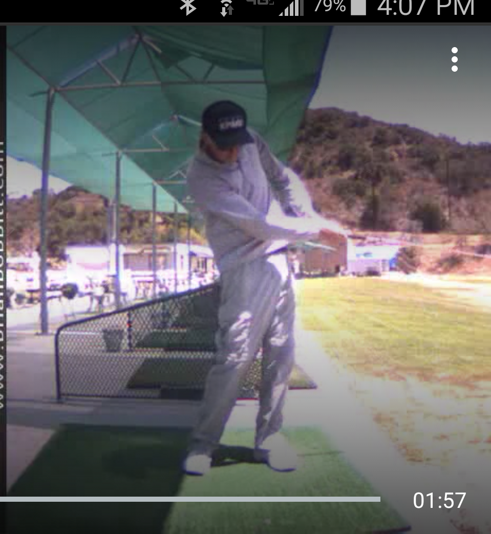 My Evolvr instructor, Brian, was happy with my progress.  I had been 1) exiting to quickly to the left after contact with the ball and 2) not straightening my legs at and after contact.  However, on my most recent videos, my head is moving back to the left and backwards away from the ball on my downswing.
