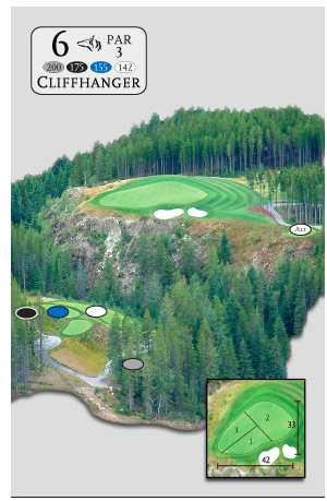 In British Columbia, Canada, the GreyWolf Golf Course (in Ivermere) Hole #6, 'The Cliffhanger",