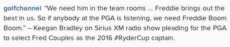 Couples also suggests he's heard from most or all of the team and they want him as Captain in 2016, but as Couples notes, “You know, I’m not a PGA of America guy.”