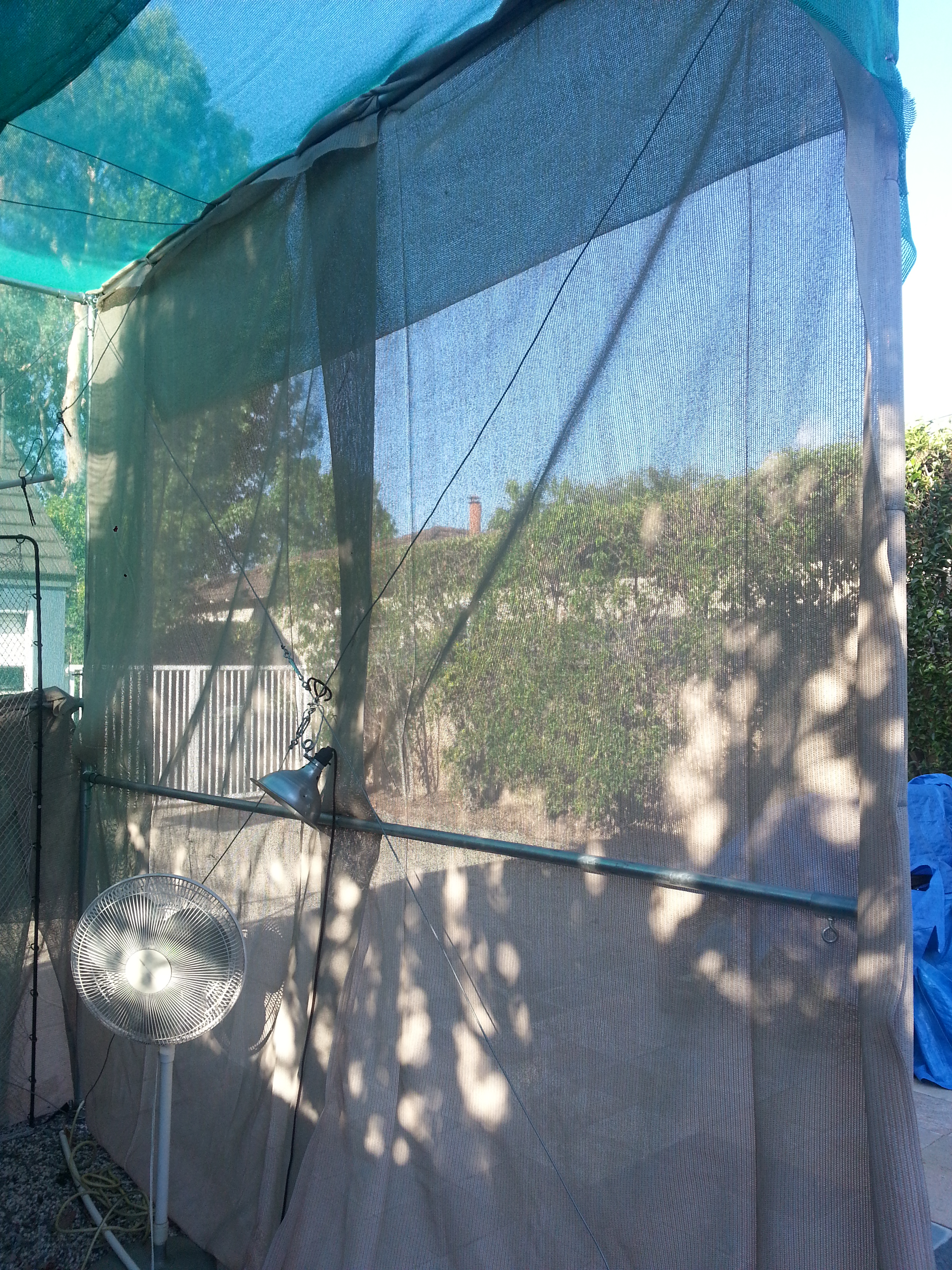 I am going to build this in my backyard. It is 10x10x10. It made out of 1 1/2 PVC pipe and PVC furniture grade connectors. The netting(the expensive part)