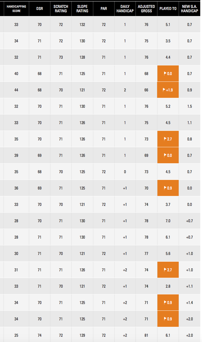 Genuine scratch marker's record - Last 3 months ALL SCORES SHOT UNDER TOURNAMENT CONDITIONS