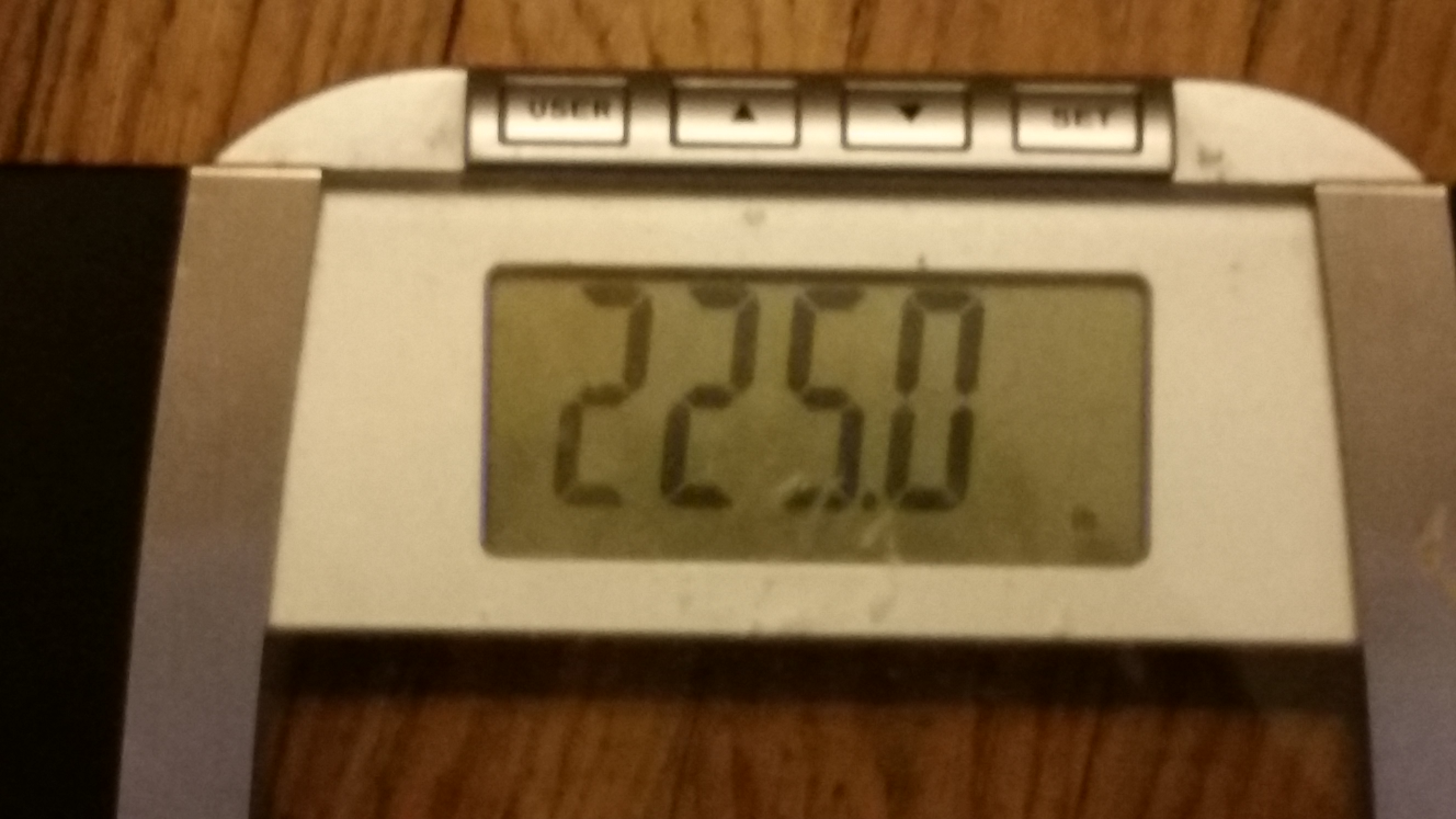 I began my weight loss journey from a starting point of 277.4 pounds on December 8 and five months and twenty days later, I jumped on the scale on this morning and saw this: