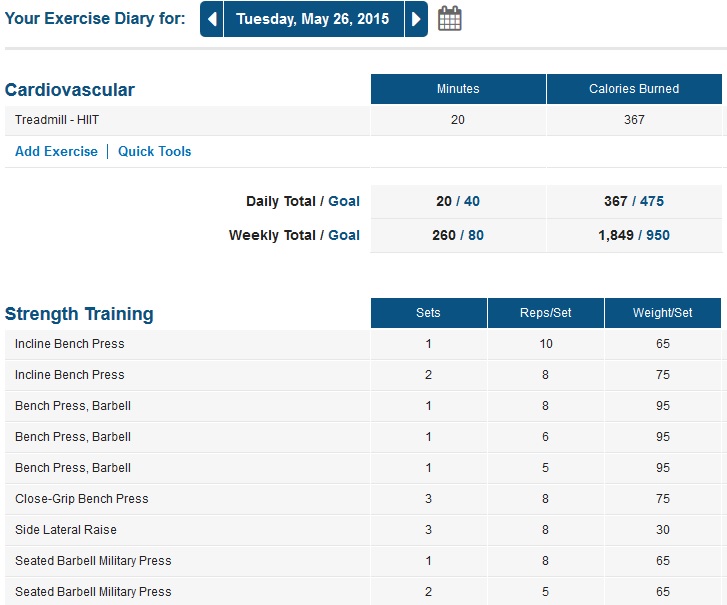 For the first time yesterday I tried calculating my 1RM while working out.  I probably should have calculated by 1RM separately from my workout but I wanted to get a workout in and also figure out my 1RM without having to wait.  So, what I got was a mix of weights and reps but I think I have a sense of getting the figure to calculate my 1RM, at least, for my push day.