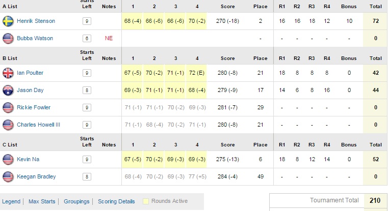 Yeah, if only Kuchar could have had a better round. I had 1st, 2nd, and 4th place finishers. Can't complain about that at all.