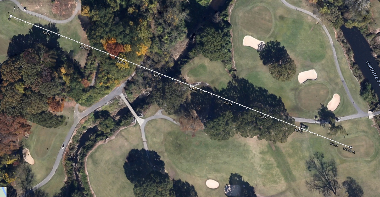 On a par 4 I drove to almost to 150 marker, I'm on a hill, that drops off a short cliff and over a creek to the short fairway and green. I checkled my golf logix and said 174 to center of green. Hit a 5 iron drooping the ball a foot in front of the hole and it rolled in for an eagle.