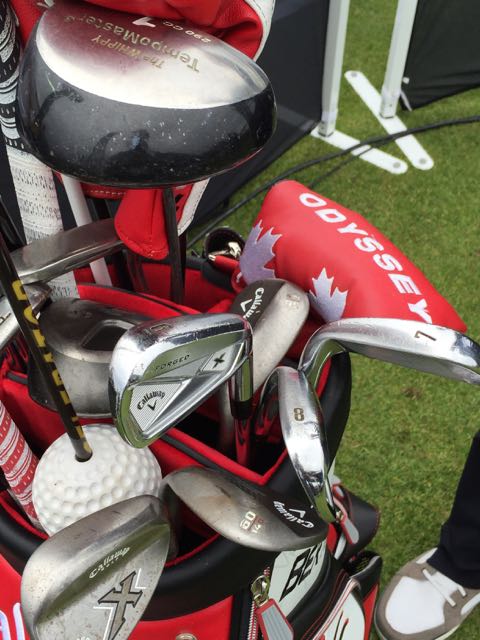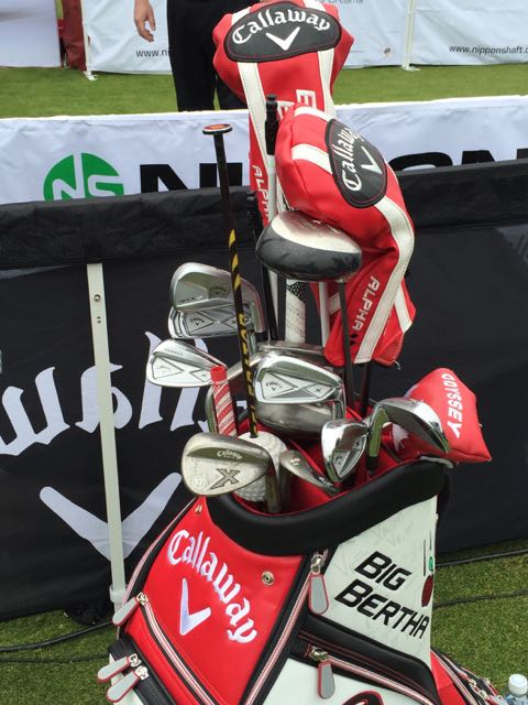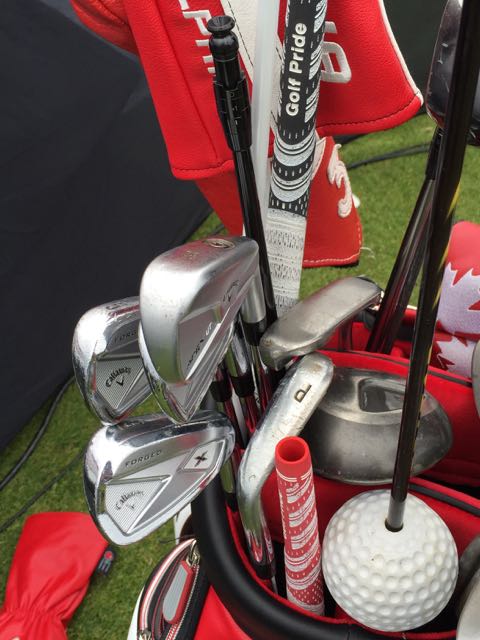 Callaway X-24 10.5° Driver, Callaway Big Bertha 15° wood, Callaway XR 19° hybrid, Callaway X-24 24° hybrid, Callaway X-24 5i-9i, PING Glide PW 47°/12°, Cleveland REG 588 52°/08°, Callaway Mack Daddy PM Grind 56°/13°, 60°/10°, Odyssey Versa Jailbird putter w/SuperStroke Slim 3.0 grip, Callaway Chev Stand Bag, Titleist Pro-V1x ball