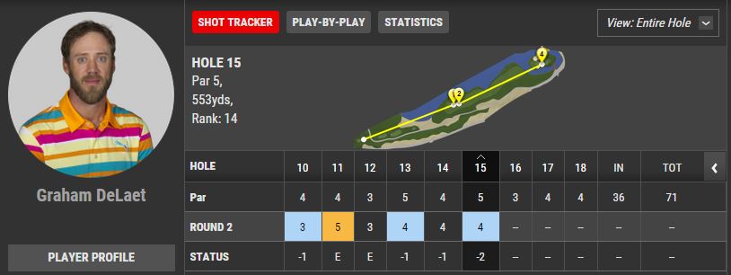 Is the shot tracker right for Graham DeLaet's most recent hole? If it is, that's one hell of a birdie.