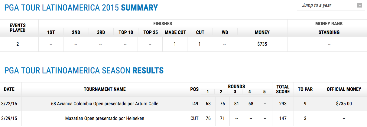 He also mentions that this season was shot during the Ecuador Open for the PGA Latin America Tour, so he missed that event. That was in September 2014. I thought the season was shot more recently than that.